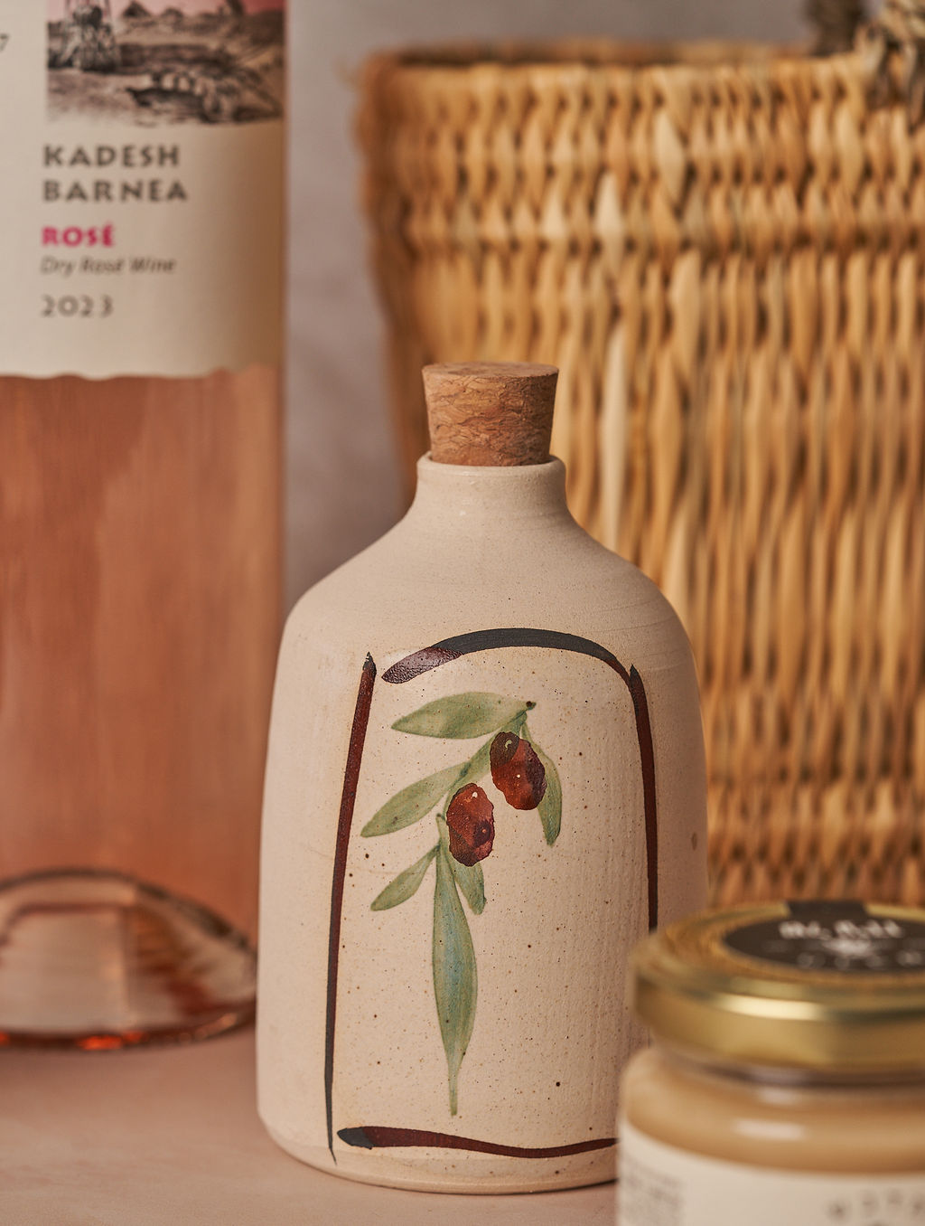 בקבוק קרמיקה לשמן זית בעבודת יד
